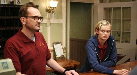 O movimento é lento e não vemos mais do que dois hóspedes ao mesmo tempo. Quando um sai, outro chega. Os primeiros são uma dupla, mãe e filho que deixam o hotel após acidentalmente, mas constantemente serem atormentados por Luke e Claire. Eles são substituidos por um idoso que insiste em um quarto específico que já está fora de uso. O quarto no qual passou sua lua de mel. Sua persistência e sobriedade desmontam o espírito de superioridade dos dois funcionários e eles cedem. Quando o contato com uma famosa assombração se concretiza, ter uma hóspede médium é de enorme serventia. A terceira cliente, é uma ex-atriz e agora curandeira interpretada por uma envelhecida Kelly McGillis, de Top Gun. Armada com um pêndulo e muitas garrafinhas de vodka, ela informa Claire que as respostas que ela espera obter, nada tem a ver com o que o Yankee Pedlar Inn tem a contar. Os três hóspedes são como aparições vivas. Peculiares e excentricos.