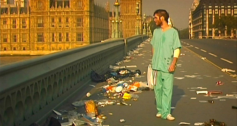 Quando Jim acorda sozinho no hospital, ele não tem a mínima idéia do que aconteceu. E quem está familiarizado com a série The Walking Dead, pode ter notado a semelhança no modo de economizar muita grana não mostrando o surto da doença. Vagando pelas ruas desertas de Londres, com fome e desorientado, ele se torna objeto de pena e apreensão. Alguém vai aparecer, mas o nosso conhecimento da história nos faz desejar que ele descubra sobre o perigo e não com ele. Toda a informação que Jim recebe vem de poucos sobreviventes quase tão perdidos quanto ele. Quem estava acordado durante a sistemática queda das cidades, tem uma história pessoal para contar e algumas regras de sobrevivência, não mais do que isso. Eles nem sabem a extensão da contaminação.
