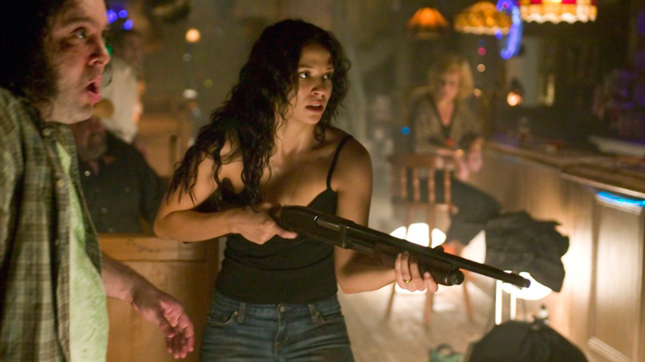 É um filme tão acelerado e tão cheio de carnificina, que não dá para acreditar que ele se passe em apenas um lugar e com tão pouca gente. O bar com mais ou menos uma dúzia de perdedores, só pode estar no caminho de algum lugar importante, porque não é possível que alguém se desloque de casa até lá para “curtir” o ambiente aconchegante, fornecido por empregados desmotivados, patrões abusivos e clientes bêbados. É o lugar perfeito para que acontecimentos desastrosos não venham a público. Uma pena, para quem certamente vai morrer e nem ter sua história contada para o mundo inteiro, como as circunstâncias da morte exigem teoricamente. Após uma breve apresentação dos personagens, os vilões aparecem e cercam o bar. Sem origem, sem destino, sem motivo além da fome, eles transformam o local em um verdadeiro inferno
