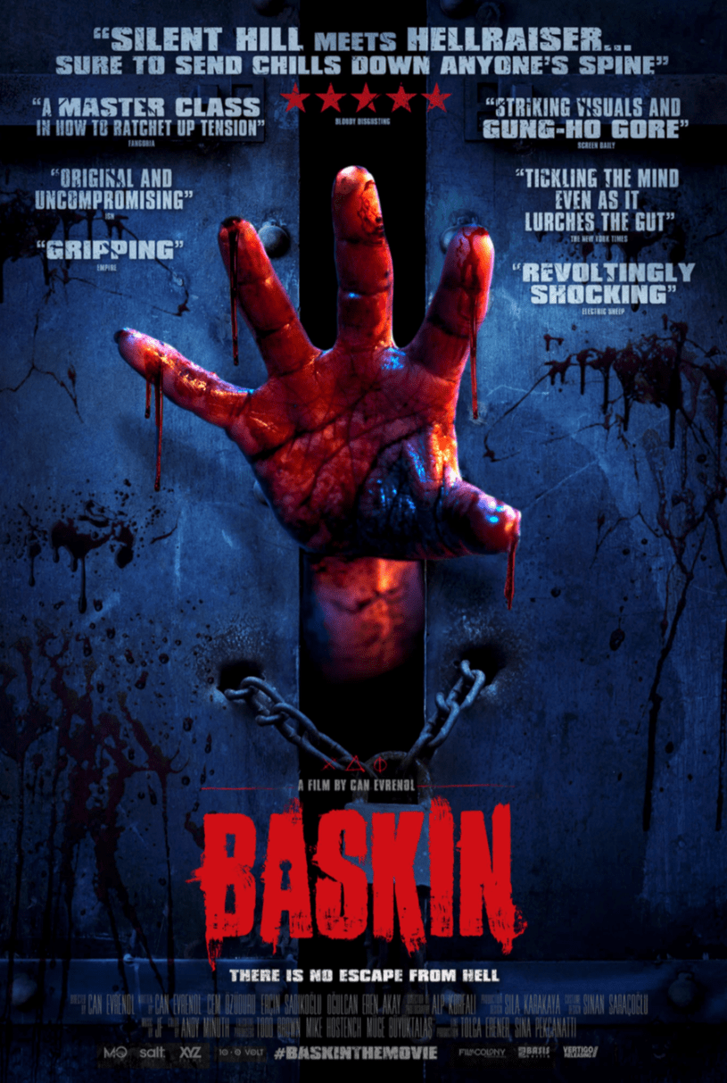 Baskin faz parte de uma recente onda turca de filmes de terror, com suficientes títulos de diferentes diretores com diferentes estilos, para puxar o tapete do reinado japonês e quem sabe, ter seus originais refeitos por Hollywood em breve. Alguns destes filmes fazem tanto sucesso domesticamente, que viram verdadeiras sagas com três ou mais continuações, geralmente obedecendo a linguagem dos antecessores, mas com histórias completamente diferentes (notem que eu não disse originais). O acervo de terror só nesta última década é tão volumoso e variado, em termos de tipo e de qualidade, que a impressão que fica é que o país investe muito no gênero e que eu estou perdendo o meu tempo esperando a estreia e assistindo apenas ao material vindo dos lugares habituais. Talvez seja o momento de dar voz aos nossos irmãos do Oriente Médio, para descobrir quem são os monstros do folclore deles e como eles escolhem exorcizá-los na tela.