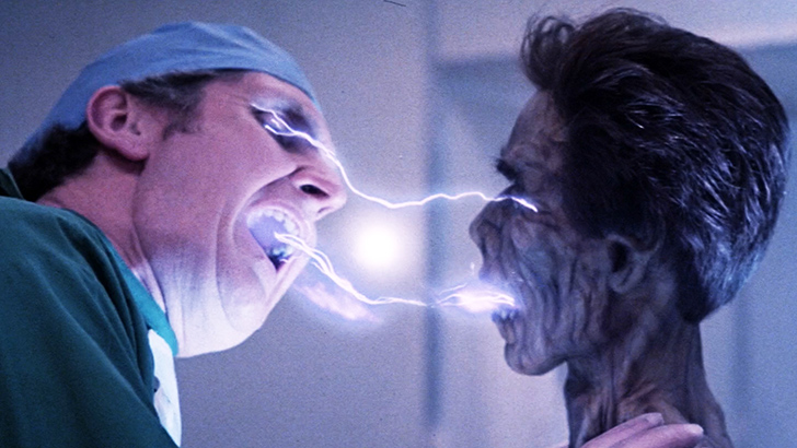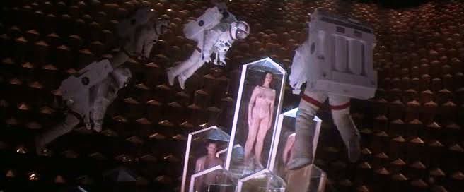 Para o ano de lançamento, é uma coleção mais do que decente de efeitos visuais. Não que houvesse uma preocupação excessiva com durabilidade, diante da passagem do tempo. O filme me passa um ar de ficção científica dos anos 50 e 60, mesmo com toda a nudez e a matança, talvez pelos sets colossais, como os detalhados e impressionantes de dentro e fora da nave alienígena, e pela superprodução que o filme tinha a ambição e o orçamento para ser, só que em uma linguagem um pouco ultrapassada diversas vezes, contando até com uma abertura narrada e uma ligação telefônica, que ao invés da simplicidade de mostrar os dois lados, prefere fazer o ator repetir para o público o que está ouvindo pelo fone. Aqueles raios azuis de eletricidade, simbolizando a transferência de energia entre os vampiros do espaço e algum pobre coitado, eram a coisa mais legal do mundo na época. Hoje, eu diria que o legado que ainda tem relevância aqui, é o modelo dos zumbis. Quando os aliens escapam do laboratório, deixando evidente que são areia demais para o caminhão governamental, eles rapidamente começam a consumir quem aparece pela frente. O que sobra, é uma espécie de cadáver consciente de tempo limitado, tentando também sugar a energia de outra pessoa para se manter vivo por mais algumas horas e assim, contaminando outros inocentes que terão a mesma sina. O conceito é monstruoso e a aparência é bizarra. Artificiais o suficiente para parecerem criações completamente inéditas, ao mesmo tempo exibindo uma veracidade, que olhar para eles causa incômodo, como se estivéssemos violando a privacidade de possíveis familiares, com nossa curiosidade mórbida e invasiva.