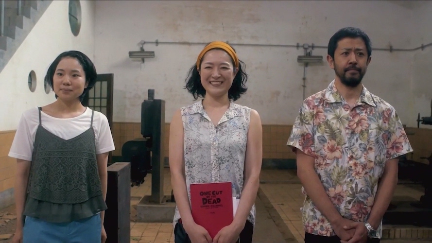No Japão, dentro de uma fábrica desativada, ou órgão do governo abandonado, sei lá, não fica muito claro; uma jovem foge do namorado que virou um zumbi. Com apenas um minuto de perseguição, o diretor grita CORTA e ele não está nem um pouco feliz. A maquiagem é aquele azul-smurf típico de morto japonês, as atuações são péssimas, já são mais de quarenta takes e dizem as más línguas que o diretor se enfiou em uma dívida pesada para fazer aquele filme. Durante um break super necessário para acalmar os ânimos, a única câmera que grava os bastidores sem cortes, já que a proposta é realmente um plano-sequência, segue os atores e a equipe como se todos estivessem matando tempo. O interessante é que mesmo com esta pausa sendo roteirizada, a falta de assunto incomoda e em diversas ocasiões ficamos muito desconfortáveis… e na tela não é diferente. A sementinha é plantada, quando alguém menciona que a locação tem um histórico macabro. Quando todos menos esperam, um zumbi de verdade aparece! Pior, quando se descobre que o incidente tem o aval do diretor, desesperado por autenticidade, mas espere! Ainda tem muito, muito mais para acontecer.