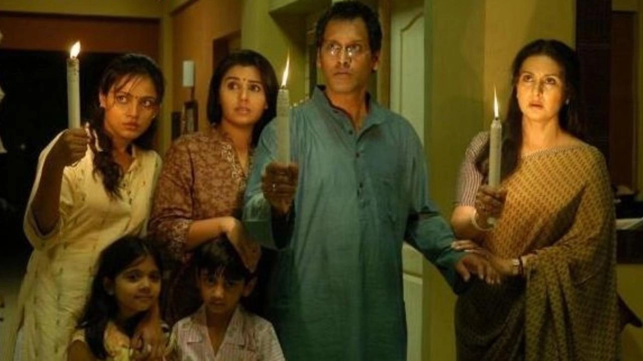 No apartamento recém-adquirido pelos homens da família, o único a notar fenômenos estranhos é Manohar, mas não poderia ser diferente já que ele é o alvo solitário das travessuras sobrenaturais, não apenas da residência, como do prédio inteiro. O elevador não funciona quando Manohar está sozinho e o celular dele apresenta problemas quando ele está em casa. Dois acidentes domésticos machucam o rapaz (em um deles, as gotas de sangue desenham o número 13 no chão, é uma fofura!), então se pelo menos Manohar ficar esperto com os sinais, nem tudo está perdido. O leite estraga todos os dias e ninguém consegue pendurar quadros de divindades na tradicional sala de oração, porque as paredes se recusam a aceitar pregos, mas nenhum destes recursos batidos do gênero são páreo, para uma das premissas mais interessantes e intrigantes que eu já vi em um filme de terror: somente na televisão daquele apartamento, iniciando exatamente às 13 horas da tarde, uma telenovela invade a programação com uma história que imita a vida da família, atores parecidos interpretam os “papéis” dos moradores da casa e como a narrativa transmitida se passa algumas horas no futuro, o evento surreal acaba servindo de instrumento de previsão, mas somente para Manohar, já que o restante da família está distraído/ocupado/entretido demais com o aparelho de t.v. para compartilhar o sentimento que mistura fascínio com pânico, tomando conta do rapaz.