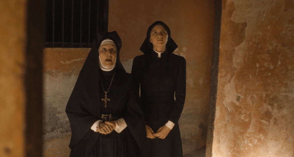 Atendendo ao convite de um velho amigo e protetor, Margaret irá trabalhar em um orfanato romano agregado ao convento no qual ela fará os votos. Sonia Braga está no filme, como uma das superioras, bem como Bill Nighy, o protetor de Maggie e cardeal encarregado do local. O sempre marcante Charles Dance, em uma participação especial, oferece com informações incompletas, o ponta pé da tentativa de combate ao maléfico e com uma retirada de cena macabra, ele também fornece a primeira de diversas imagens chocantes e memoráveis do filme, mas falaremos sobre estas mais para frente. Dentro do centro de acolhimento para meninas e somente para elas, do 0 aos 18, existe muita dedicação, amor e respeito. As excessões são uma das irmãs, que não parece bem da cabeça; uma das crianças, que também não parece muito bem da cabeça e um dos cômodos, que serve de punição para o mau comportamento, mas julgando por quem vira e mexe se encontra de castigo nele, não chega a ser encarado como um instrumento de tortura e realmente não é este o intuito. A recém chegada faz amizades rapidamente e há liberdade de expressão, até mesmo entre as irmãs mais antigas, que não condenam conversas ousadas, ou a necessidade das mais novas, ainda sem o véu de compromisso, de explorar opções de aprendizado e experiências fora do convento. O ambiente transmite paz, porque todo mundo ali acredita estar a serviço do divino… e crença é a força mais importante do universo de A Profecia, que conta agora com cinco versões em sequência, um remake e uma série de televisão.