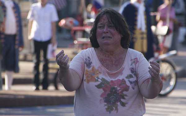 Claridge é uma cidade pequena, que enche de turistas em datas como a daquele dia fatídico, só que tanto o drama e o terror que o diretor extrai de dentro dele, não está relacionado ao número de vítimas atingidas. O trabalho de maquiagem é tão competente quanto muitos outros no gênero e o que nos pega de surpresa, é que muitas vezes não precisamos dele. O áudio de moradores passando mal e pedindo ajuda, é tão perturbador quanto as imagens da bactéria responsável pelo caos, que reconhecemos como a vilã da história, saindo de fissuras em corpos de mortos e vivos, sem noção da própria importância. As cenas da idosa vomitando sangue na calçada são terríveis, mas não teriam o mesmo impacto sem a vizinha que as registra, enquanto tenta acionar a polícia em meio aos prantos dos filhos e do desespero que a faz esquecer o próprio endereço. A violência não chega a ser banalizada, mas não há misericórdia para os considerados vulneráveis, porque ao invés de ser um horror apaziguado pela humanização, ele é intensificado por ela. A ineficiência das autoridades e equipes de socorro, é um dos aspectos mais marcantes e realistas da história, que fala de uma comunidade sendo dilacerada quase que completamente, quando não há o que fazer, para aqueles entre nós que tinham curiosidade de ver o desenrolar de uma ideia dessas. É um pouco como Catástrofe Nuclear (Threads – 1984), só que sem medo de ser muito mais nojento e ir parar do nosso lado dos trilhos.
