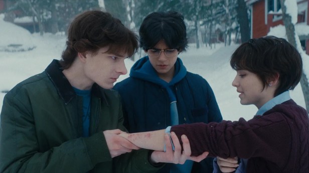 Desta vez é uma dinâmica meio Harry, Hermione e Ron Weasley, acontecendo nesta sequência de terror. O primeiro filme tinha um senso de urgência que não existe aqui, porque Finn já saiu do porão do serial killer, no qual todos os meninos tinham um prazo de expiração. Em Telefone Preto 2, o perigo já passou faz muito tempo. Finn escuta os mortos, enquanto a irmã os vê e sonha com eles, mas apesar das muito bem filmadas e reveladoras cenas de sonho de Gwen, os dois estão a salvo. O filme ressalta esta ideia de que o tempo irá curar todas as feridas, com uma narrativa sem pressa. Desta maneira, as duas produções de terror se tornam experiências completamente diferentes, ainda que tenha os mesmos protagonistas e mesmo trazendo os mortos do primeiro filme, como é o caso de Hawke e do ator Miguel Mora, que interpretava Robin (o menino que ajudou Finn e posteriormente foi sequestrado e morto). Mora agora faz Ernesto, o irmão mais novo de Robin, que muito apegado à dupla principal, faz o trio que me fez mencionar Harry Potter. A turma se junta para investigar a fonte dos tormentos noturnos de Gwen, que ignora o bullying bem melhor do que Finn e abraça com coragem as habilidades psíquicas. Os pedidos sobrenaturais de ajuda, estão vindo de uma colônia cristã de férias nas montanhas cobertas de gelo, coincidentemente um antigo local de trabalho da mãe dos médiuns… que também era médium, lembra? Pois bem, nesta altura, algumas interações sobrenaturais são assustadoras e comprometedoras, mas tudo de ruim continua no passado. Nem a nevasca fechando as estradas até o acampamento Pine me preocupa.